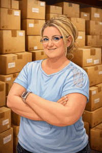 Digitale Avatar-Frau im Lagerbereich